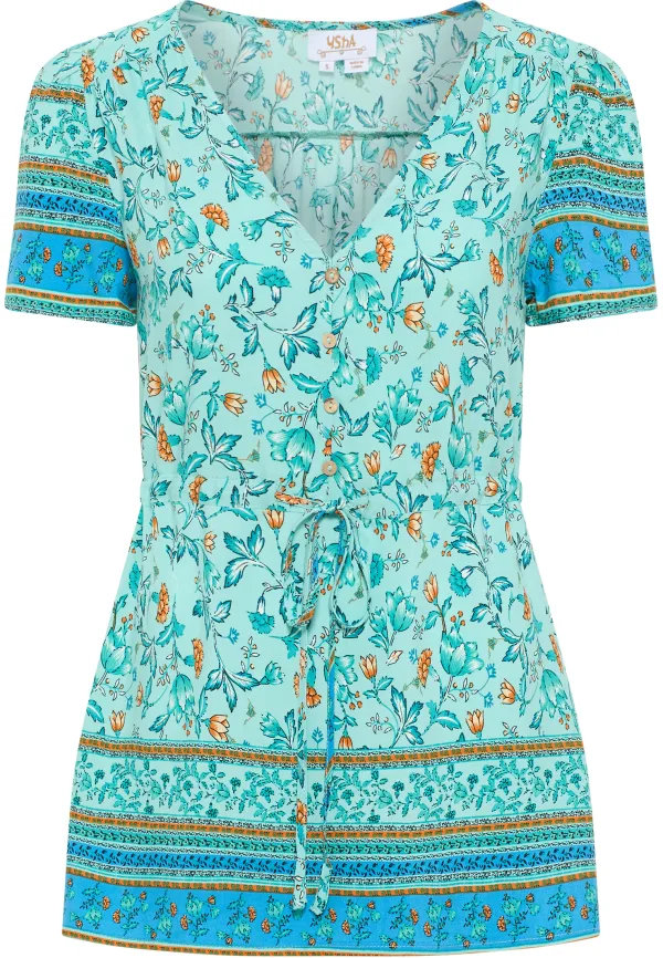 usha blouse met korte mouwen Dames Turkoois Veelkleurig Prijzen