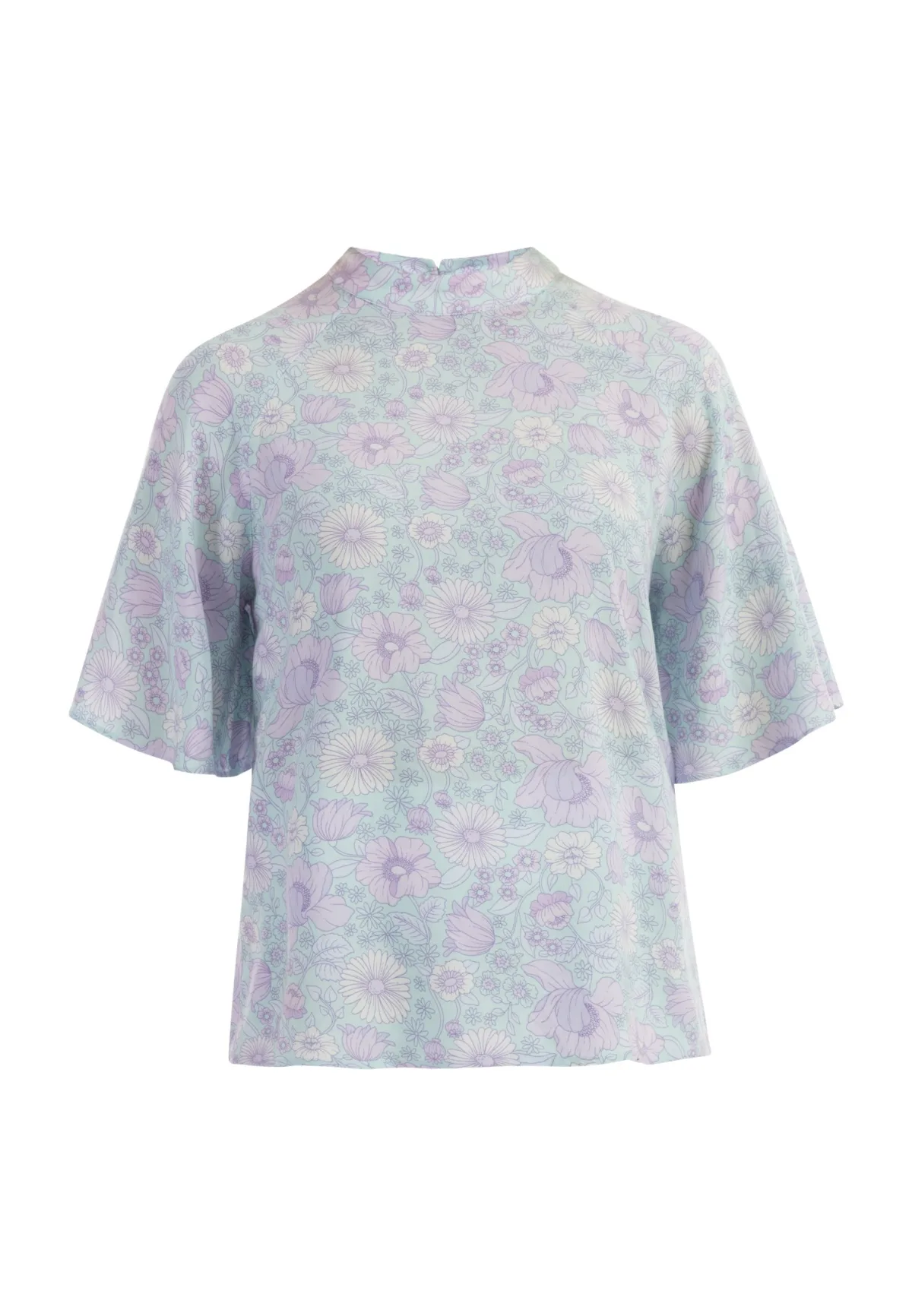 De kleine opstaande kraag van deze usha-blouse in combinatie met de raglanmouwen en de korte fladdermouwen toont een moderne stijl die vooral goed tot zijn recht komt op een smalle broek. Het vederlichte en zachte viscosemateriaal is bovendien absoluut geschikt voor de zomer en ook de pastelkleurige bloemenprint verrijkt je outfits. blouse met korte mouwen