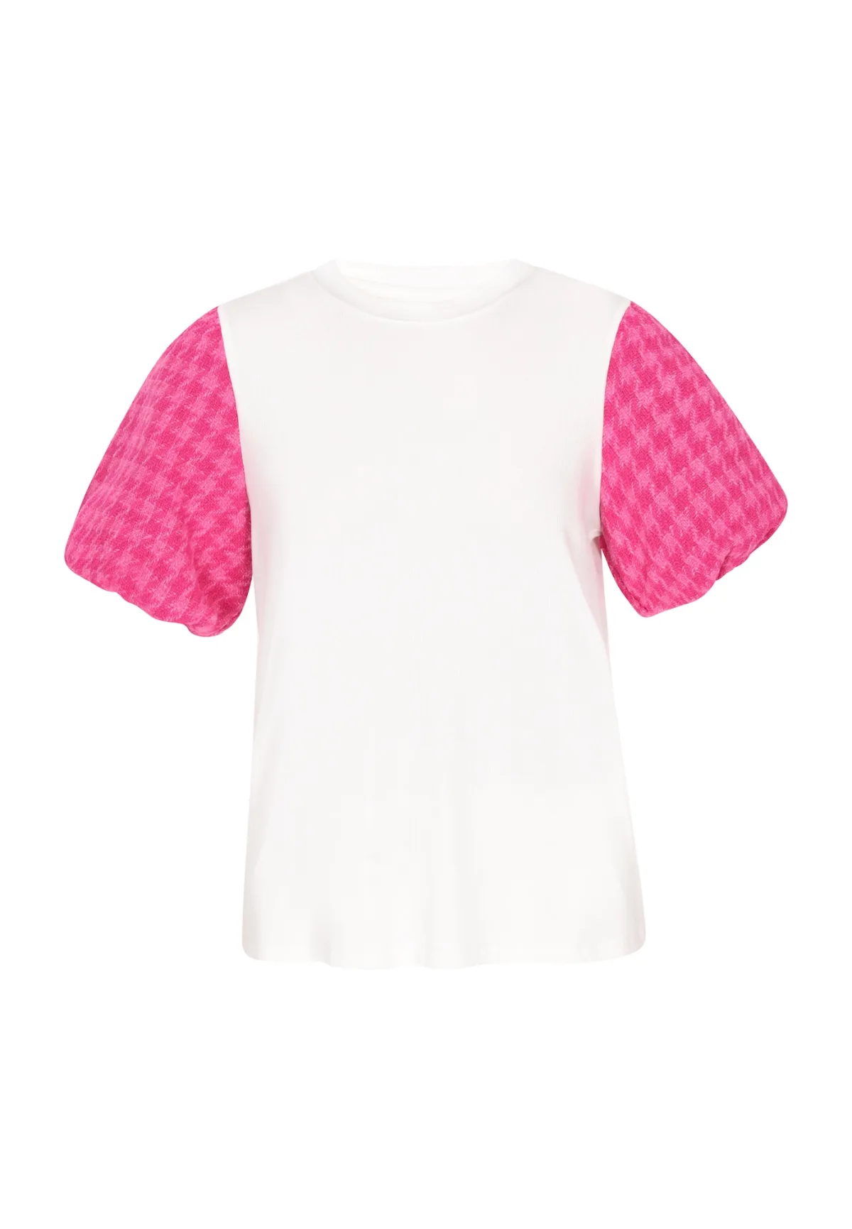 Blouse type: Blouseshirt; Design: Pofmouwen; Type sluiting: Slip; Materiaal: Viscose; Kraag: Zonder kraag; Pasvorm: Normale pasvorm; Armlengte: Kwartmouw; Lengte: Normale lengte