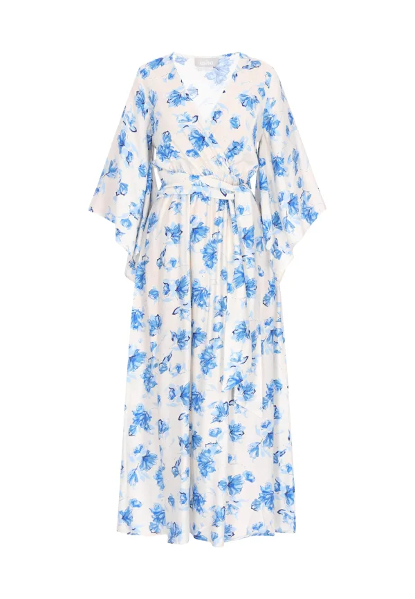 Design: Vleermuismouwen, Tailleriem; Materiaal: Viscose; Motief: Bloemenprint; Kraag: Zonder kraag; Details: Gedrapeerd, Wikkel design; Extra's: All-over patroon, Lichte stof; Lengte: 7/8 lengte; Snit: Recht; Pasvorm: Normale pasvorm; Armlengte: Driekwart mouw