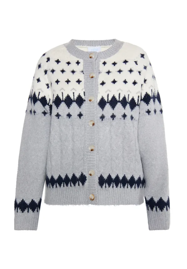 usha BLUE LABEL Gebreid vest ecru / grijs / zwart