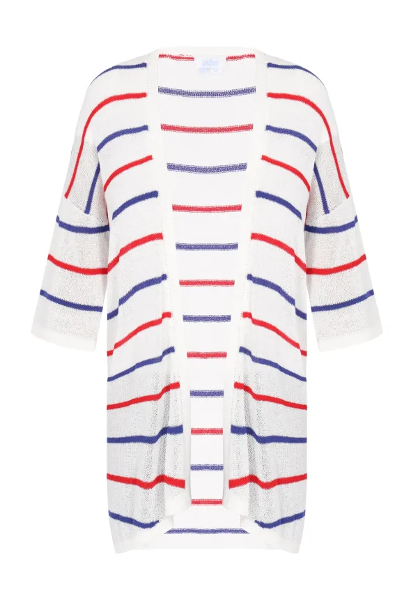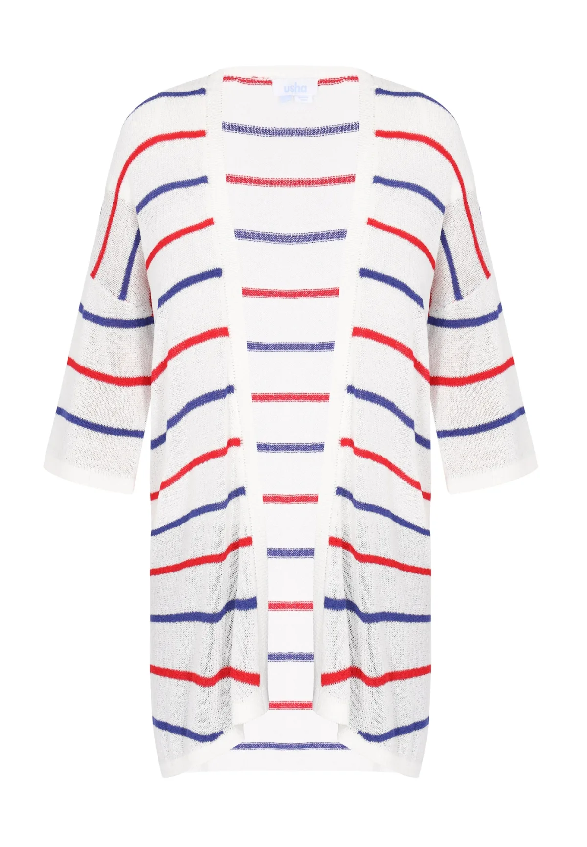 usha BLUE LABEL Gebreid vest enziaan / rood / wit Prijzen