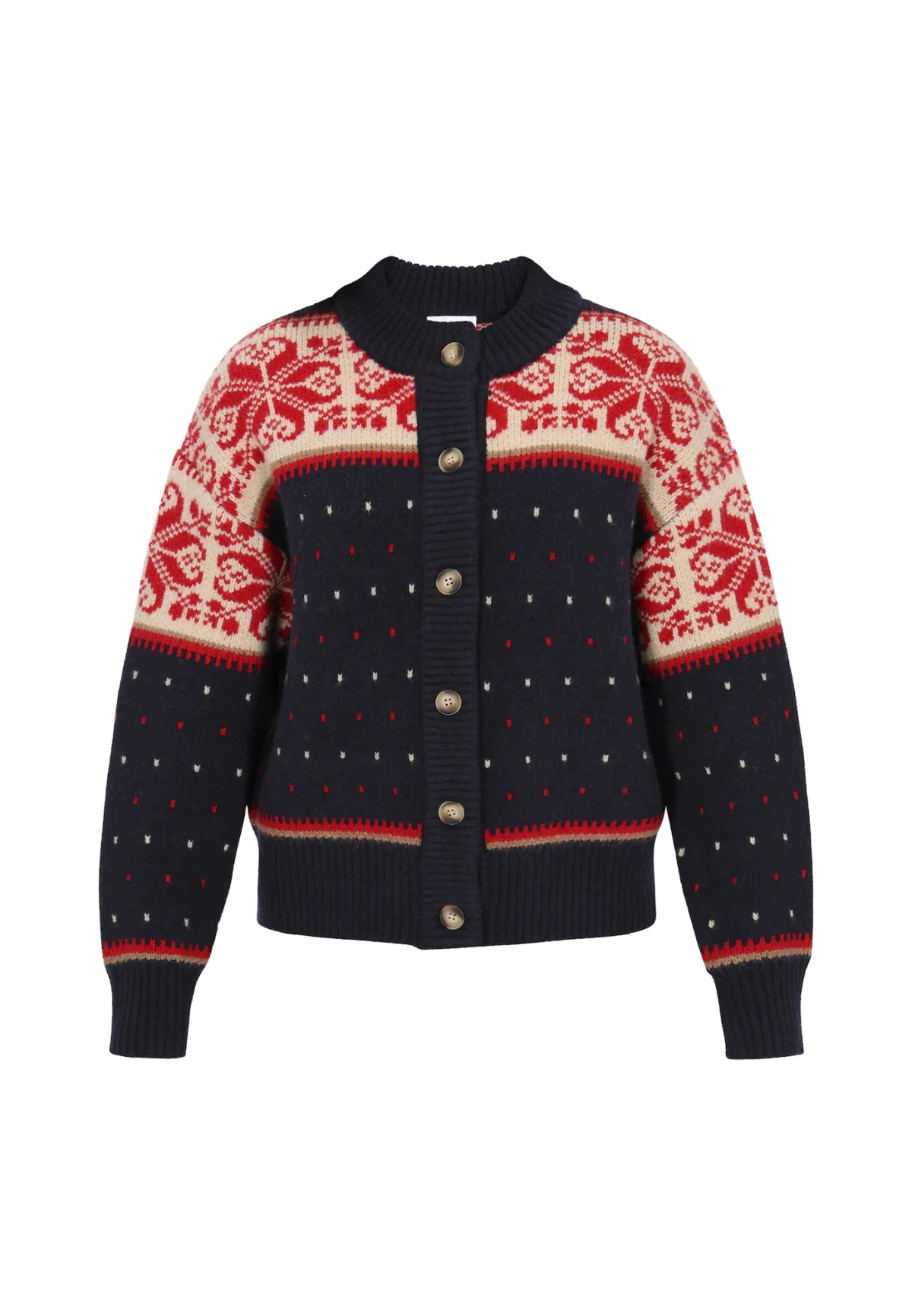 usha BLUE LABEL Gebreid vest marine / lichtbruin / rood / wolwit Prijzen