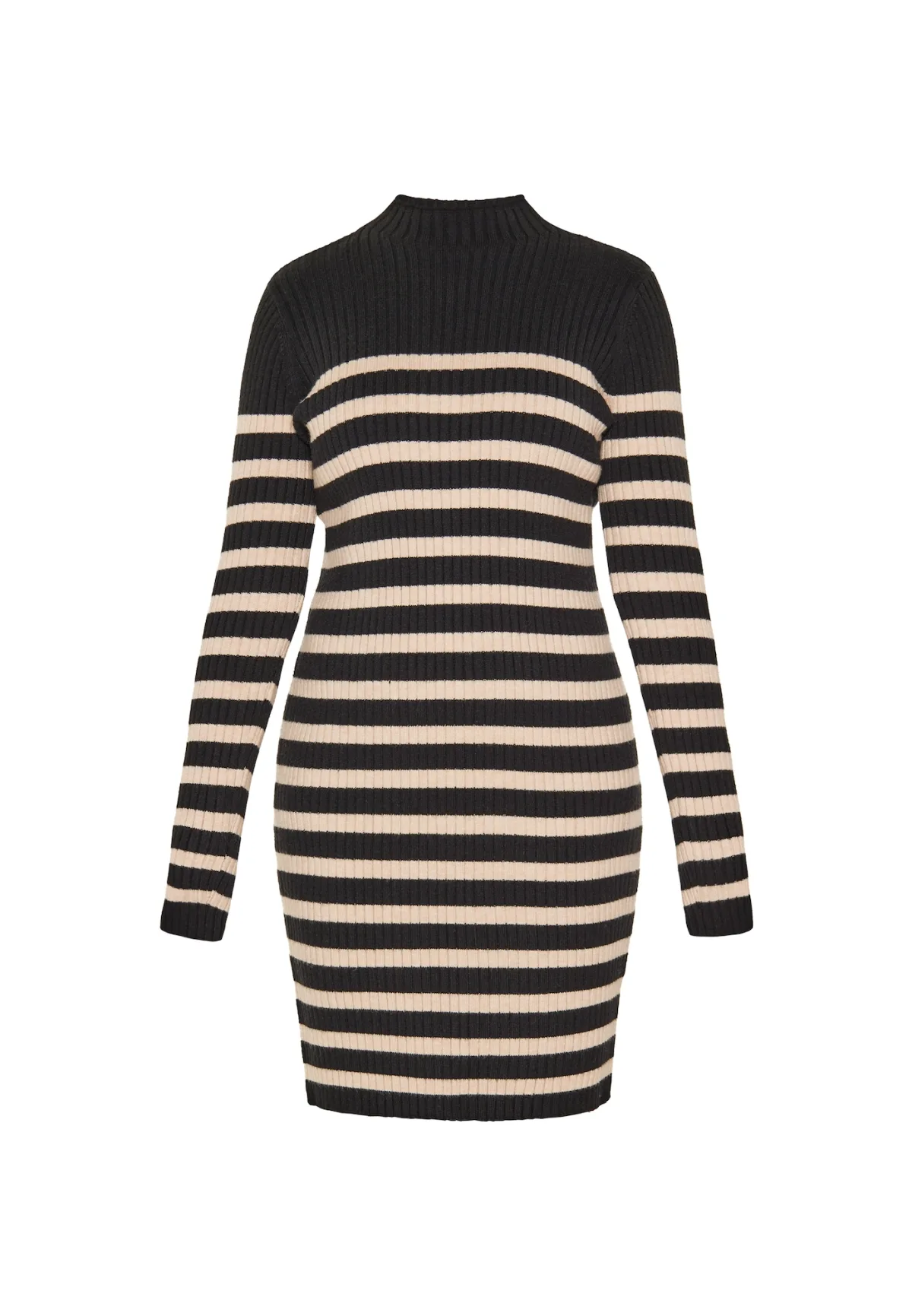 Design: Geribbelde kraag; Materiaal: Knitwear; Halstype: Opstaande kraag; Motief: Gestreept; Extra's: All-over patroon; Lengte: Knielengte; Snit: Recht; Pasvorm: Normale pasvorm; Armlengte: Lange mouw