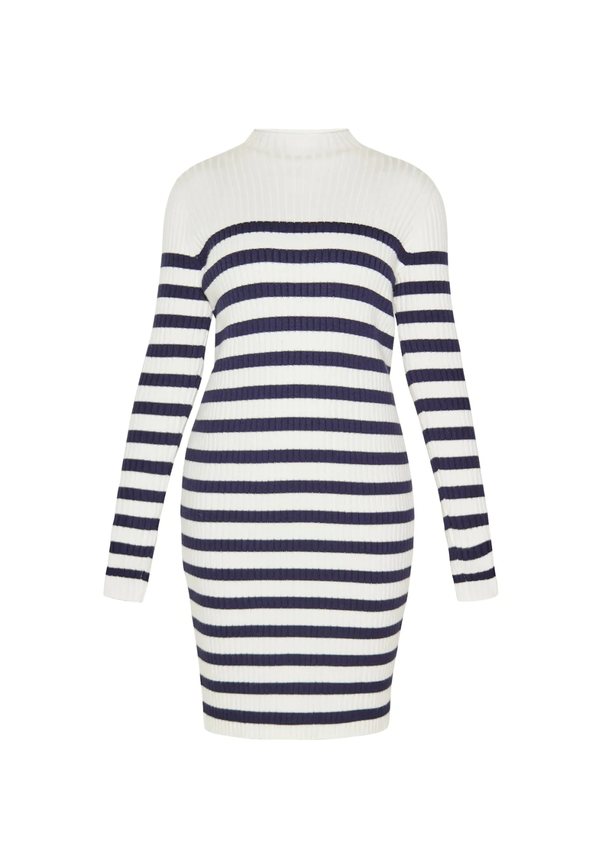 Design: Geribd ceintuurtje; Materiaal: Knitwear; Halstype: Opstaande kraag; Motief: Gestreept; Extra's: All-over patroon; Lengte: Knielengte; Snit: Recht; Pasvorm: Normale pasvorm; Armlengte: Lange mouw
