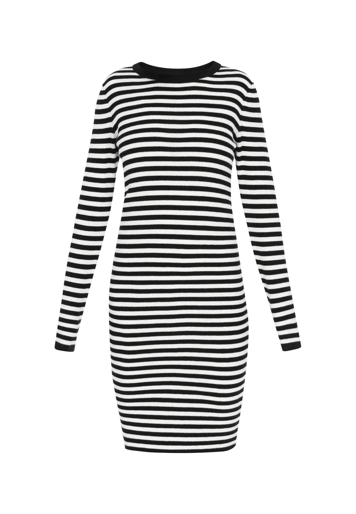 Design: Rechte zoom; Materiaal: Knitwear; Halstype: Ronde hals; Motief: Gestreept; Extra's: All-over patroon; Lengte: Knielengte; Snit: Figuur omarmend; Pasvorm: Aansluitende pasvorm; Armlengte: Lange mouw