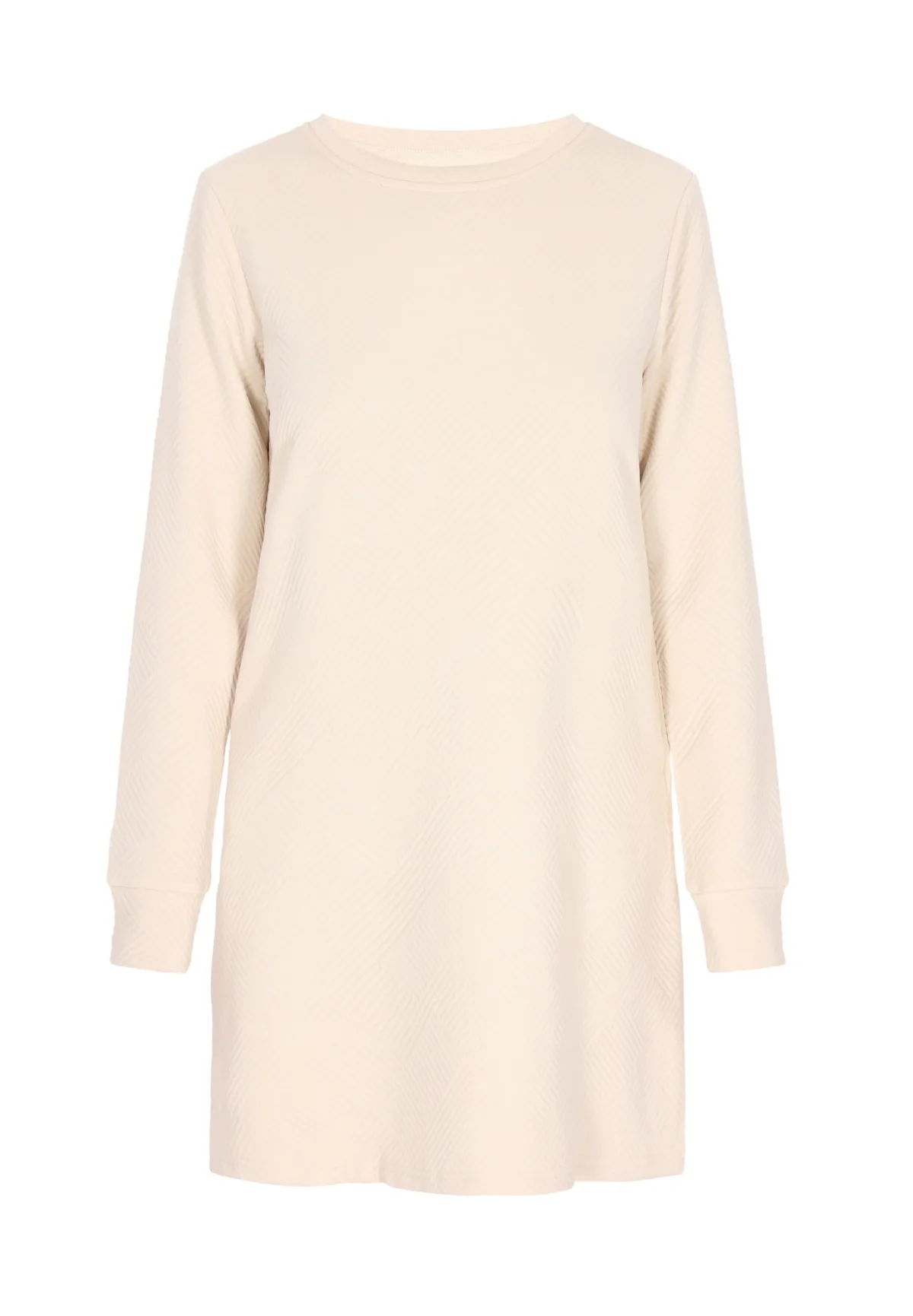 Design: Gevoerde zoom/rand; Type sluiting: Slip; Halstype: Ronde hals; Motief: Effen; Extra's: Op staal naden; Lengte: Kort/mini; Snit: Recht; Pasvorm: Losse pasvorm; Armlengte: Lange mouw