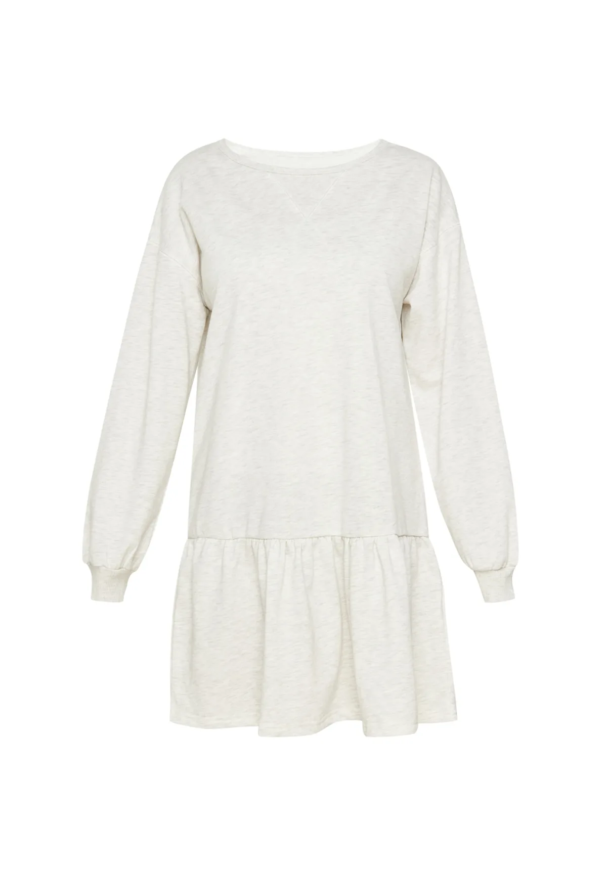 Design: Gevoerde zoom/rand; Materiaal: Jersey; Halstype: Ronde hals; Motief: Mélange; Details: Volant, Gedrapeerd; Extra's: Voelt zacht aan; Lengte: Knielengte; Pasvorm: Losse pasvorm; Armlengte: Lange mouw