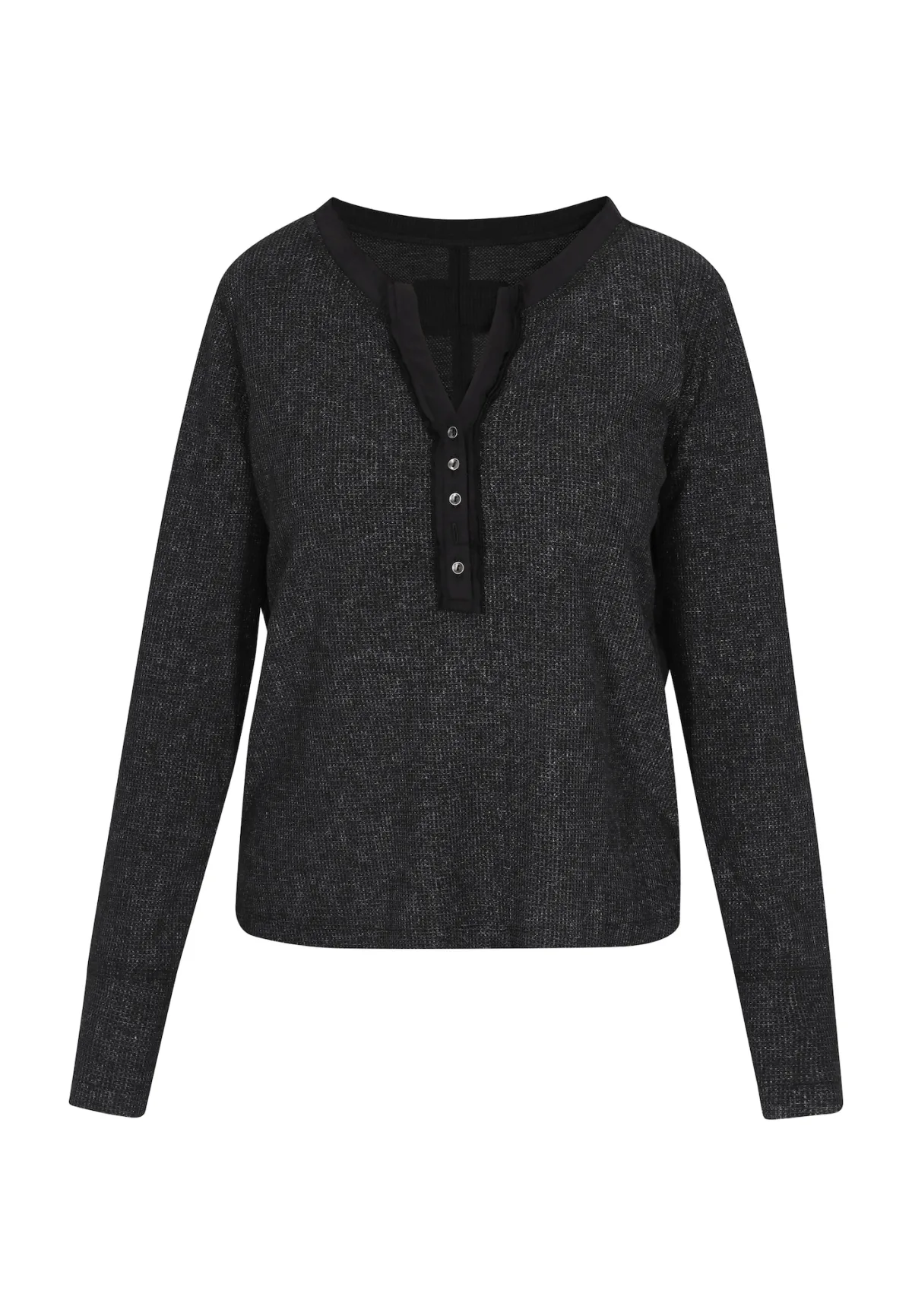 Design: Gevoerde zoom/rand; Type sluiting: Knoopsluiting; Materiaal: Knitwear; Halstype: Henley hals; Motief: Mélange; Extra's: Met textuur; Pasvorm: Normale pasvorm; Armlengte: Lange mouw; Lengte: Normale lengte