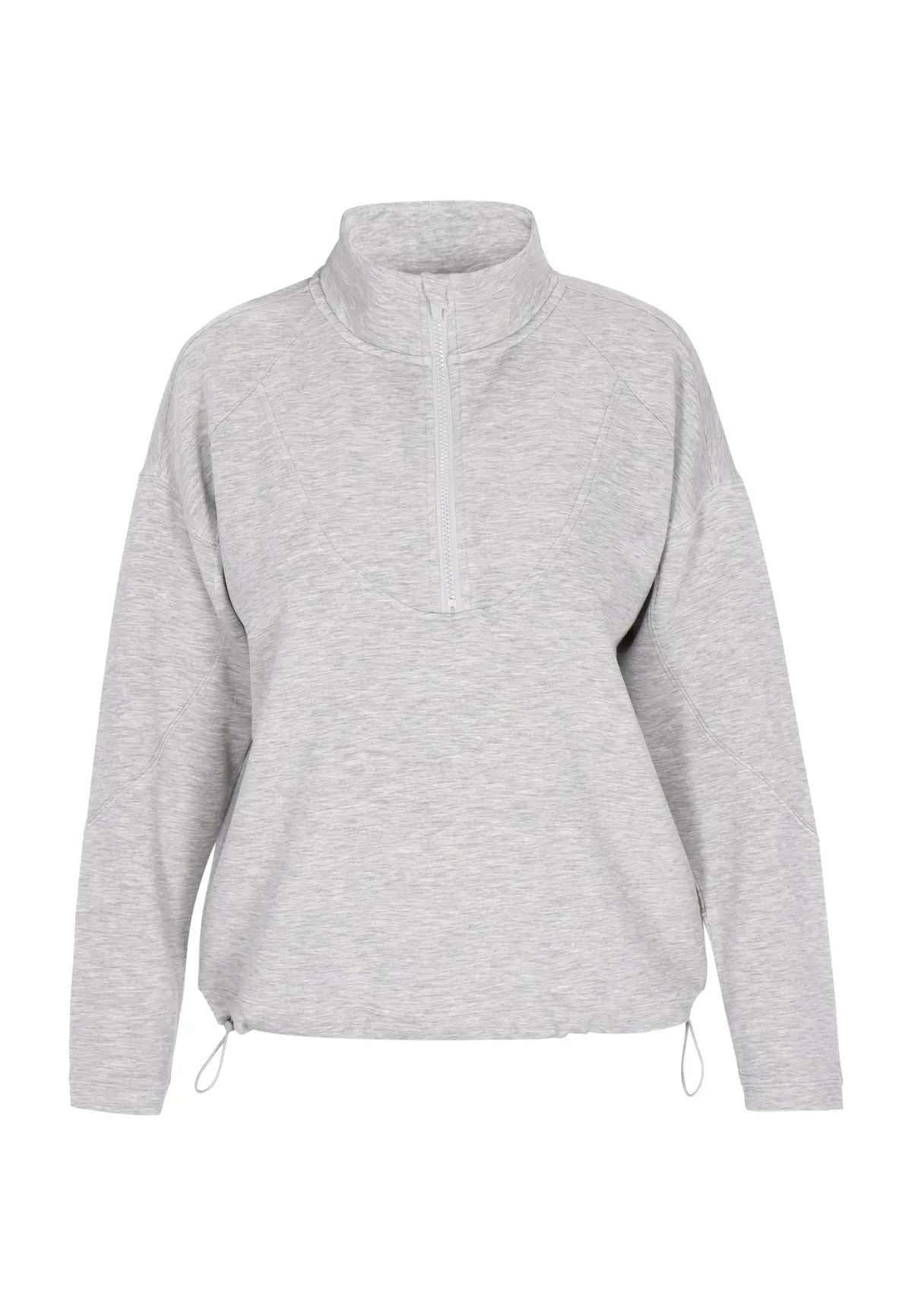 Design: Halve rits; Type sluiting: Ritssluiting; Materiaal: Sweatstof; Halstype: Schipperskraag; Motief: Mélange; Extra's: Trekkoord in de boord, Voelt zacht aan; Pasvorm: Normale pasvorm; Armlengte: Lange mouw; Lengte: Normale lengte