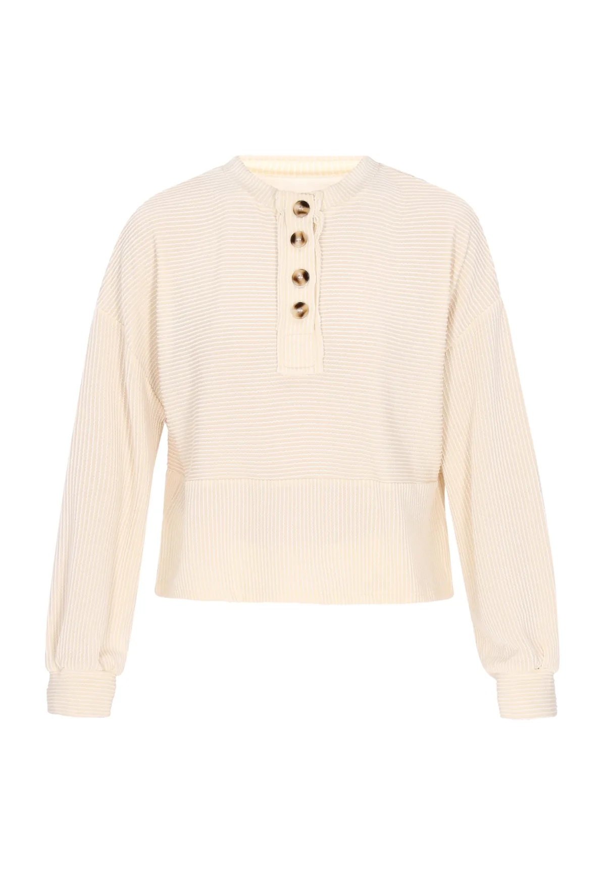 Design: Gevoerde zoom/rand, Overcut schouder; Type sluiting: Knoopsluiting; Materiaal: Sweatstof; Halstype: Henley hals; Motief: Gestreept; Extra's: All-over patroon; Pasvorm: Losse pasvorm; Armlengte: Lange mouw; Lengte: Normale lengte