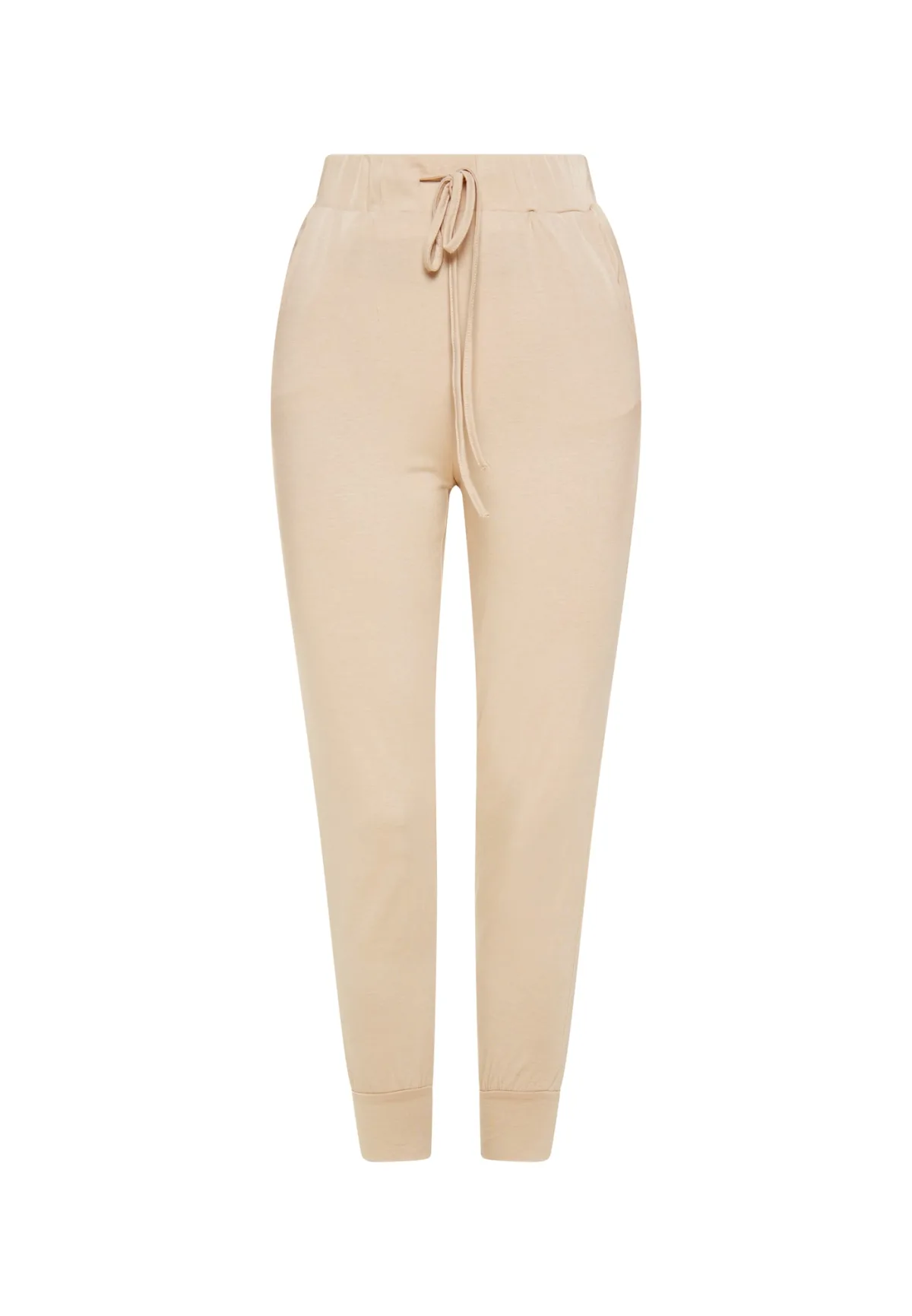 Design: Taille met trekkoord, Elastische taille/zoom, Zakken aan de zijkant; Materiaal: Jersey; Motief: Effen; Details: Gedrapeerd; Extra's: Voelt zacht aan; Lengte: Lang/maxi; Pasvorm: Tapered; Taillehoogte: High waist