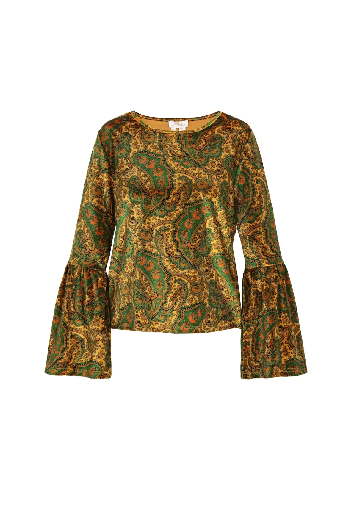 Blouse type: Wijde blouse; Design: Extra lange mouwen; Type sluiting: Slip; Motief: Paisley; Kraag: Zonder kraag; Extra’s: All-over patroon, Oplichtende stof; Pasvorm: Normale pasvorm; Armlengte: Lange mouw; Lengte: Normale lengte