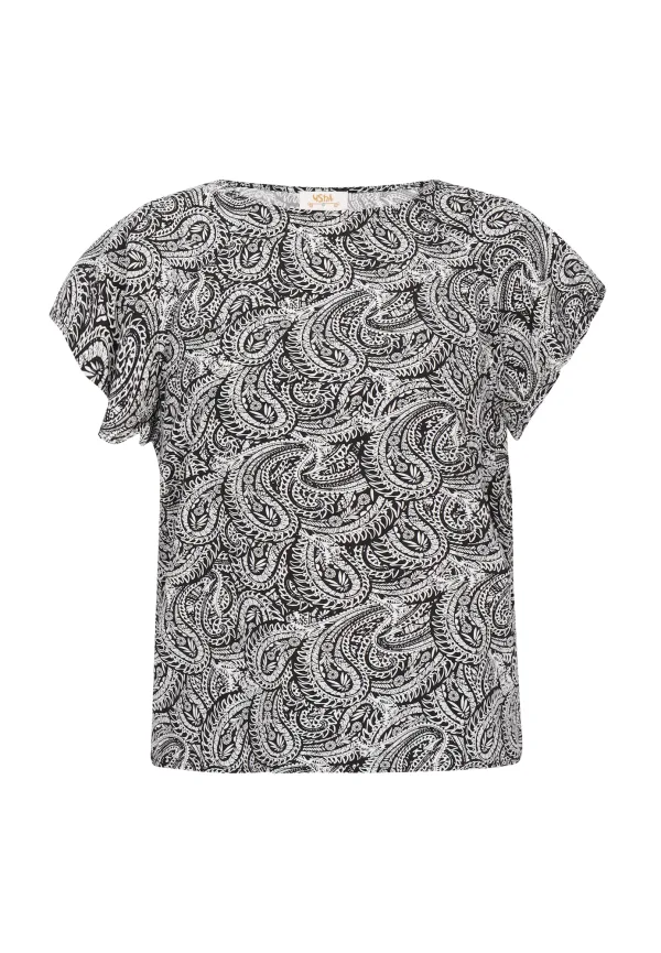 Blouse type: Blouseshirt; Design: Rechte zoom; Type sluiting: Slip; Materiaal: Viscose; Motief: Paisley; Kraag: Zonder kraag; Extra's: All-over patroon; Pasvorm: Normale pasvorm; Armlengte: Kwartmouw; Lengte: Normale lengte
