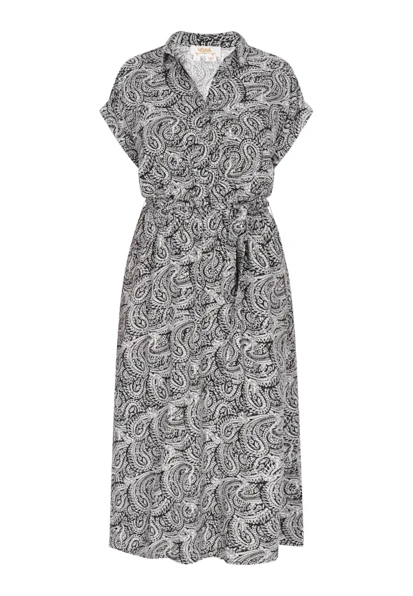 Design: Met riem; Type sluiting: Knoopsluiting; Materiaal: Viscose; Halstype: V-hals; Motief: Paisley; Kraag: Tuniek kraag; Details: Gedrapeerd; Extra's: All-over patroon; Lengte: 3/4 lengte; Snit: Getailleerd; Pasvorm: Normale pasvorm; Armlengte: Kwartmouw