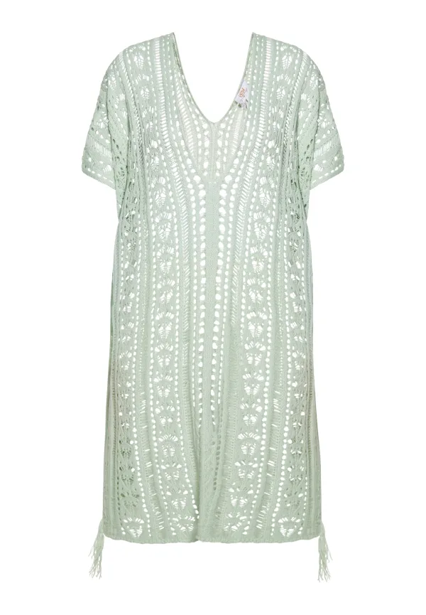 Design: Beenopening, Diepe snit/decolleté; Halstype: V-hals; Motief: Effen; Kraag: Tuniek kraag; Details: Franjes, Mesh; Extra's: Visnet brei, Op staal naden; Pasvorm: Losse pasvorm; Armlengte: Kwartmouw; Lengte: Lange pasvorm