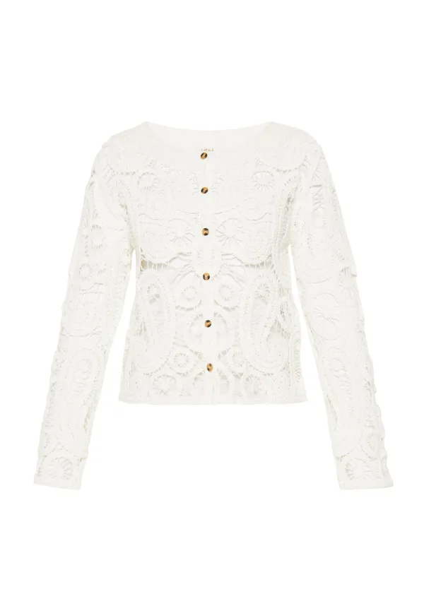 Design: Geribbelde kraag; Type sluiting: Knoopsluiting; Materiaal: Gehaakt; Halstype: Ronde hals; Motief: Effen; Details: Mesh; Extra's: Voelt zacht aan; Pasvorm: Normale pasvorm; Armlengte: Lange mouw; Lengte: Normale lengte