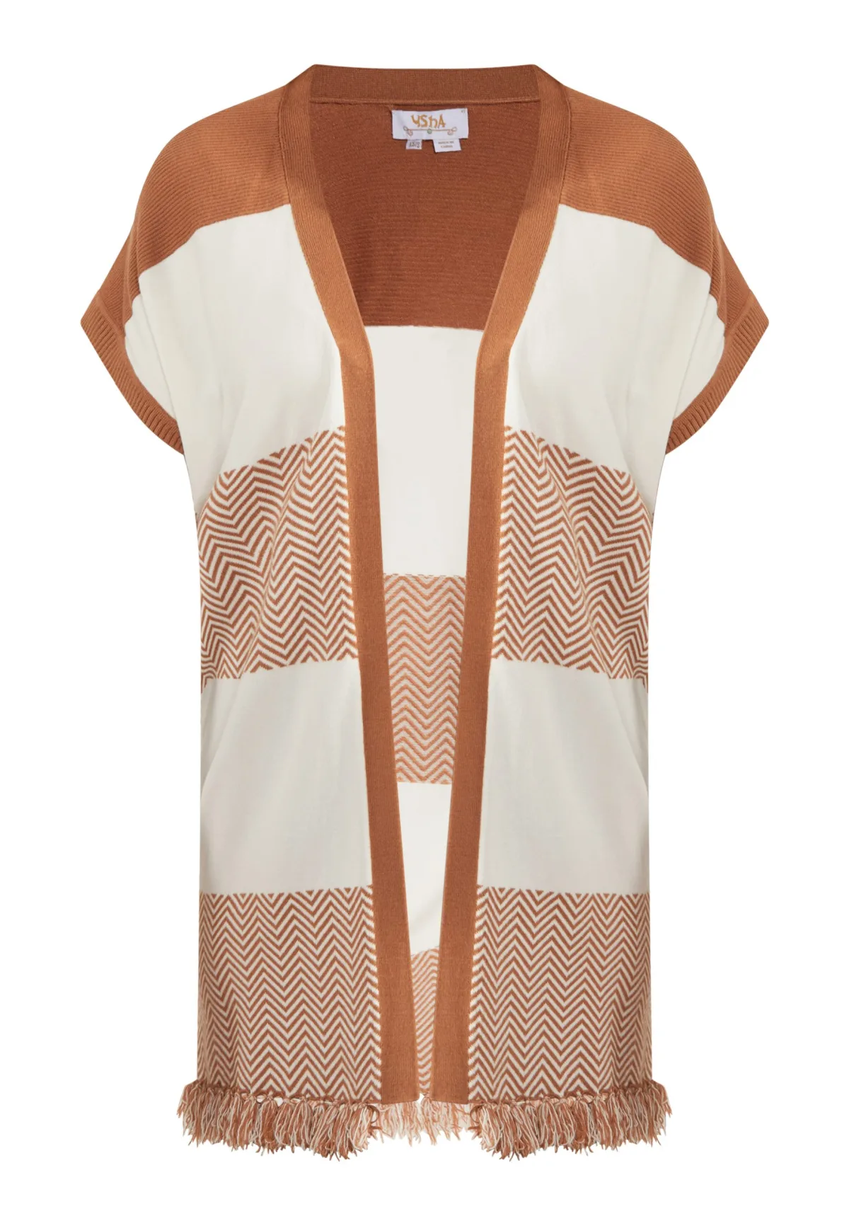 Gemaakt van een zachte viscoseblend, heeft dit vest een open silhouet met een trendy zigzagpatroon en kleine franjes aan de zoom. Combineer het usha FESTIVLA-model in een casual gelaagde look en draag het met een strakke broek en enkellaarsjes.