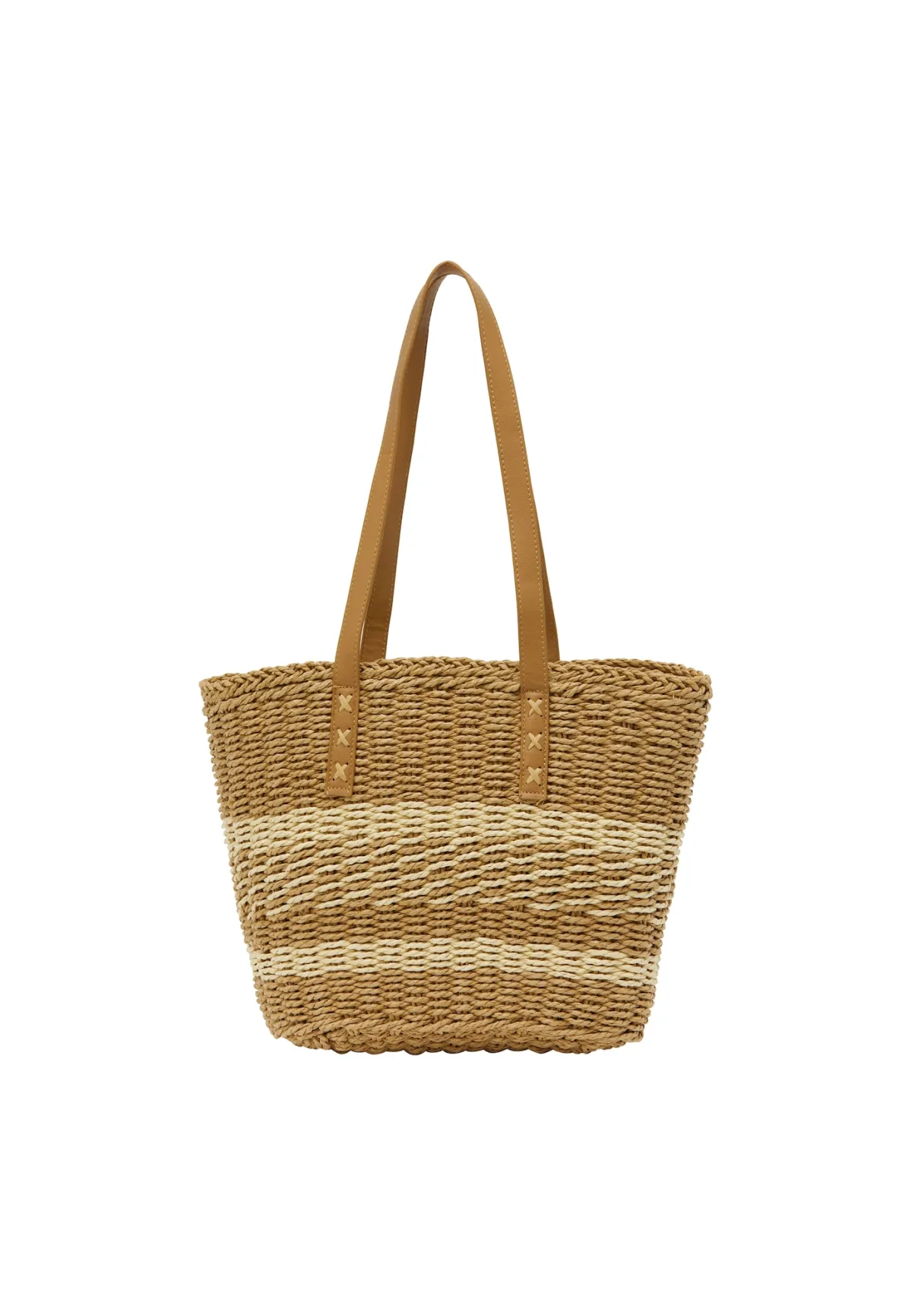 Design: Ruim hoofdvak; Type sluiting: Ritssluiting; Materiaal: Imitatieleer, Stro materiaal; Extra's: Gestructureerd oppervlak; Maat: Klein; Hengsellengte: Korte schouderriemen