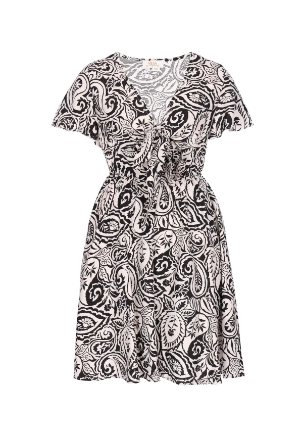 Design: Gevoerde zoom/rand, Diepe snit/decolleté; Type sluiting: Slip; Materiaal: Viscose; Halstype: V-hals; Motief: Bloemenprint; Details: Gedrapeerd; Extra's: Verstelbare taille, Gladde stof; Lengte: Kort/mini; Snit: Getailleerd; Pasvorm: Normale pasvorm; Armlengte: Kwartmouw