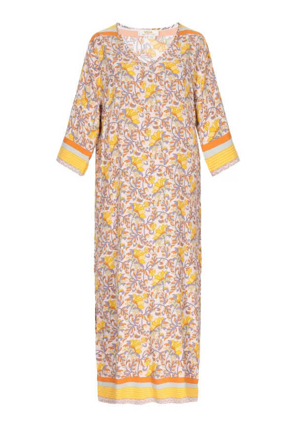 Design: Zijdelingse inkepingen; Type sluiting: Slip; Materiaal: Viscose; Halstype: V-hals; Motief: Bloemenprint; Lengte: Lang/maxi; Pasvorm: Losse pasvorm; Armlengte: Driekwart mouw