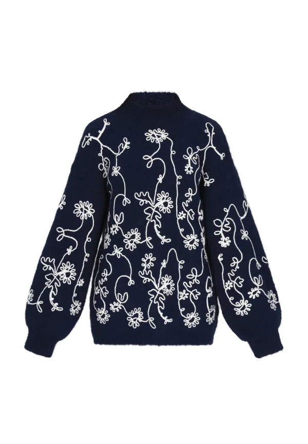 Design: Geribbelde kraag, Geribd ceintuurtje, Overcut schouder; Type sluiting: Slip; Materiaal: Knitwear; Halstype: Opstaande kraag; Motief: Bloemenprint; Details: Borduursels; Extra's: Fully fashioned, Met textuur; Pasvorm: Losse pasvorm; Armlengte: Lange mouw; Lengte: Lange pasvorm