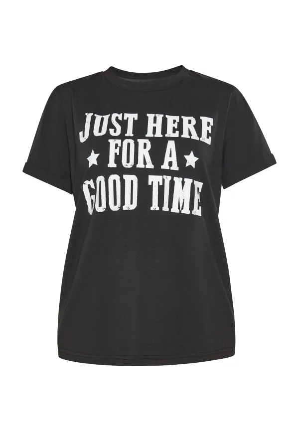 Design: Gevoerde zoom/rand, Geribbelde kraag; Materiaal: Jersey; Halstype: Ronde hals; Motief: Tekst print; Extra’s: Op staal naden, Voelt zacht aan; Pasvorm: Normale pasvorm; Armlengte: Kwartmouw; Lengte: Normale lengte