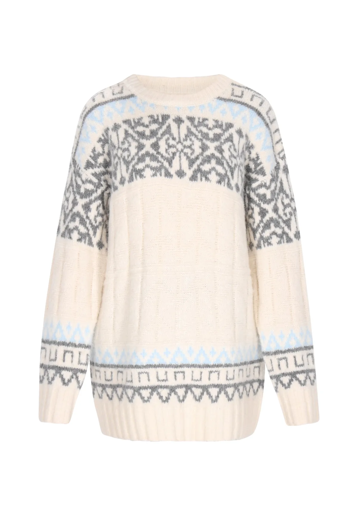 Type sluiting: Slip; Halstype: Ronde hals; Motief: Aztec print; Pasvorm: Wijde pasvorm; Armlengte: Lange mouw; Lengte: Normale lengte
