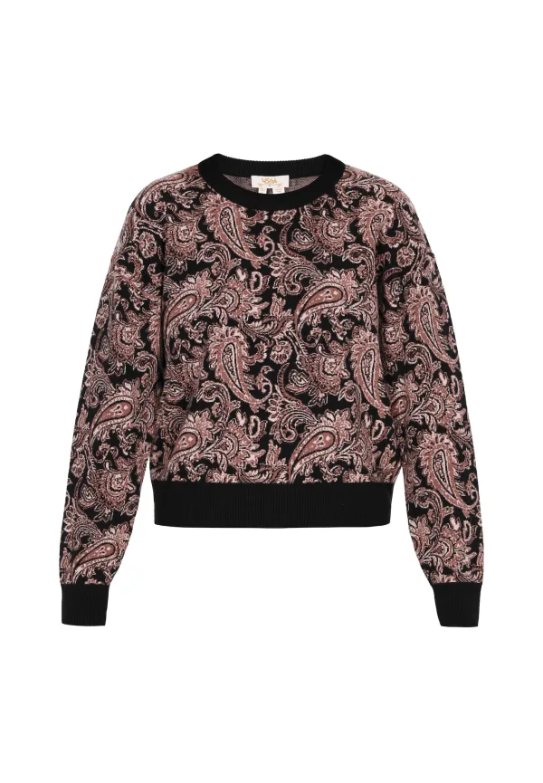 Design: Geribbelde kraag, Geribd ceintuurtje; Materiaal: Knitwear; Halstype: Ronde hals; Motief: Paisley; Extra's: All-over patroon, Met textuur; Pasvorm: Normale pasvorm; Armlengte: Lange mouw; Lengte: Normale lengte