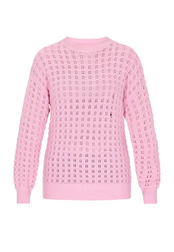 Design: Geribd ceintuurtje; Materiaal: Knitwear; Halstype: Ronde hals; Motief: Effen; Details: Mesh; Extra's: Fully fashioned; Pasvorm: Losse pasvorm; Armlengte: Lange mouw; Lengte: Normale lengte