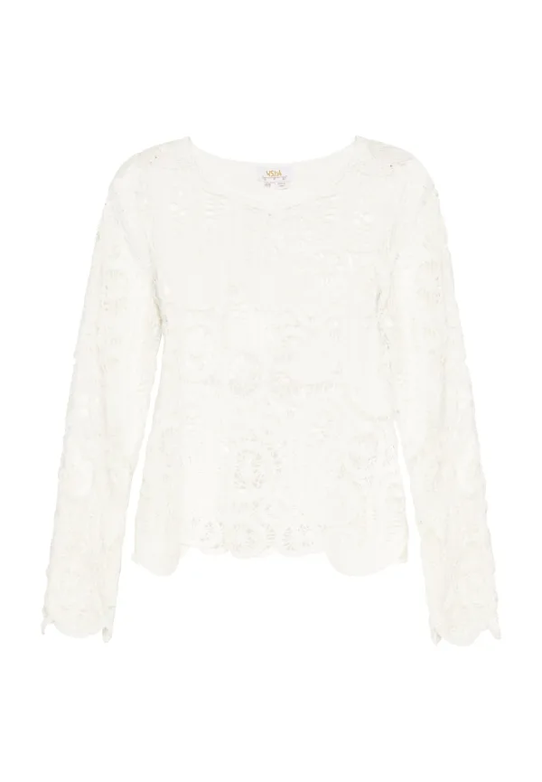 Design: Geschulpte zoom; Materiaal: Gehaakt; Halstype: Ronde hals; Motief: Effen; Details: Mesh; Extra's: Met textuur; Pasvorm: Normale pasvorm; Armlengte: Lange mouw; Lengte: Normale lengte