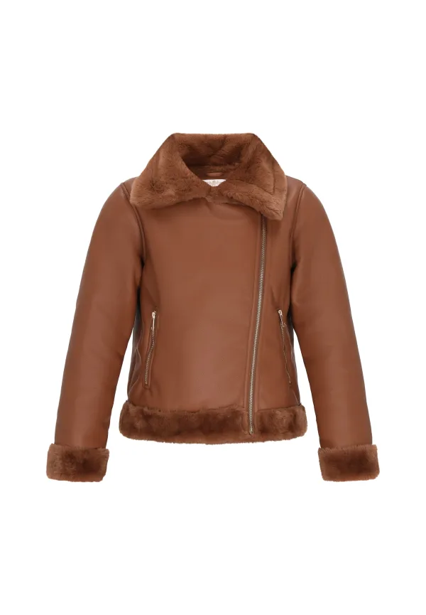 Design: Zakken aan de zijkant; Type sluiting: Ritssluiting; Type jas: Bikerjack; Voering: Warm gevoerd; Materiaal: Imitatieleder; Motief: Effen; Extra’s: Op staal naden; Pasvorm: Normale pasvorm