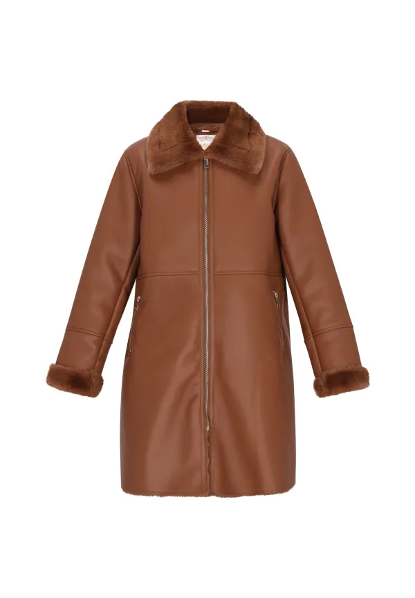 Design: Turn-down kraag, Ritszakken aan de zijkant; Type sluiting: Ritssluiting; Voering: Gedeeltelijk gevoerd; Materiaal: Imitatieleder; Motief: Effen; Extra’s: Op staal naden, Met faux bont trim; Pasvorm: Normale pasvorm; Lengte: Normale lengte
