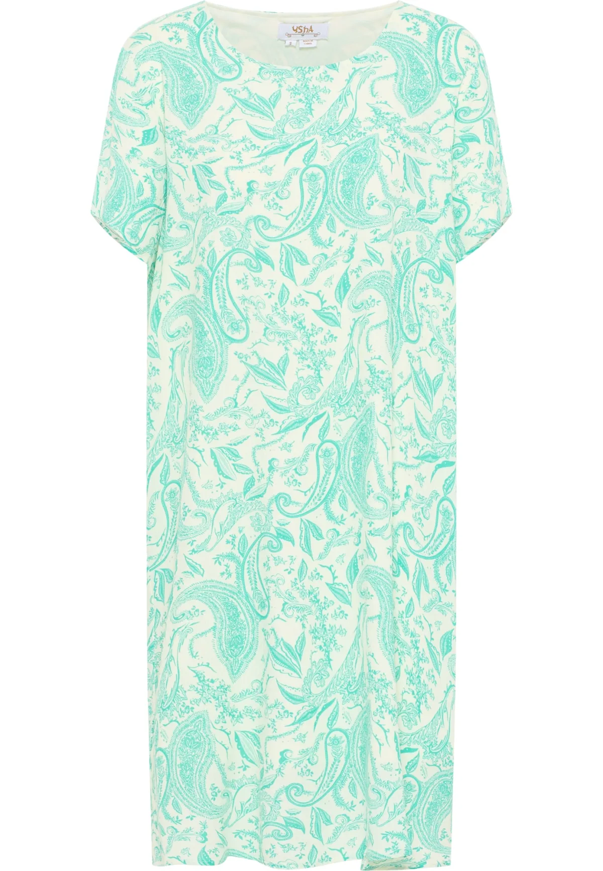 Een jurk, een casual silhouet en een modieuze paisleyprint zijn de ingrediënten voor de boho-stijl van usha FESTIVAL. De lichte, wijde zomerjurk heeft een trendy A-lijn snit en een ronde halslijn. De lichte zomerkwaliteit van pure viscose-crêpe is uiterst comfortabel om te dragen, zelfs op warme dagen. Wat je momenteel ook van plan bent: de jurk in subtiel oversized model wordt een zomerfavoriet. Jurk met korte mouwen