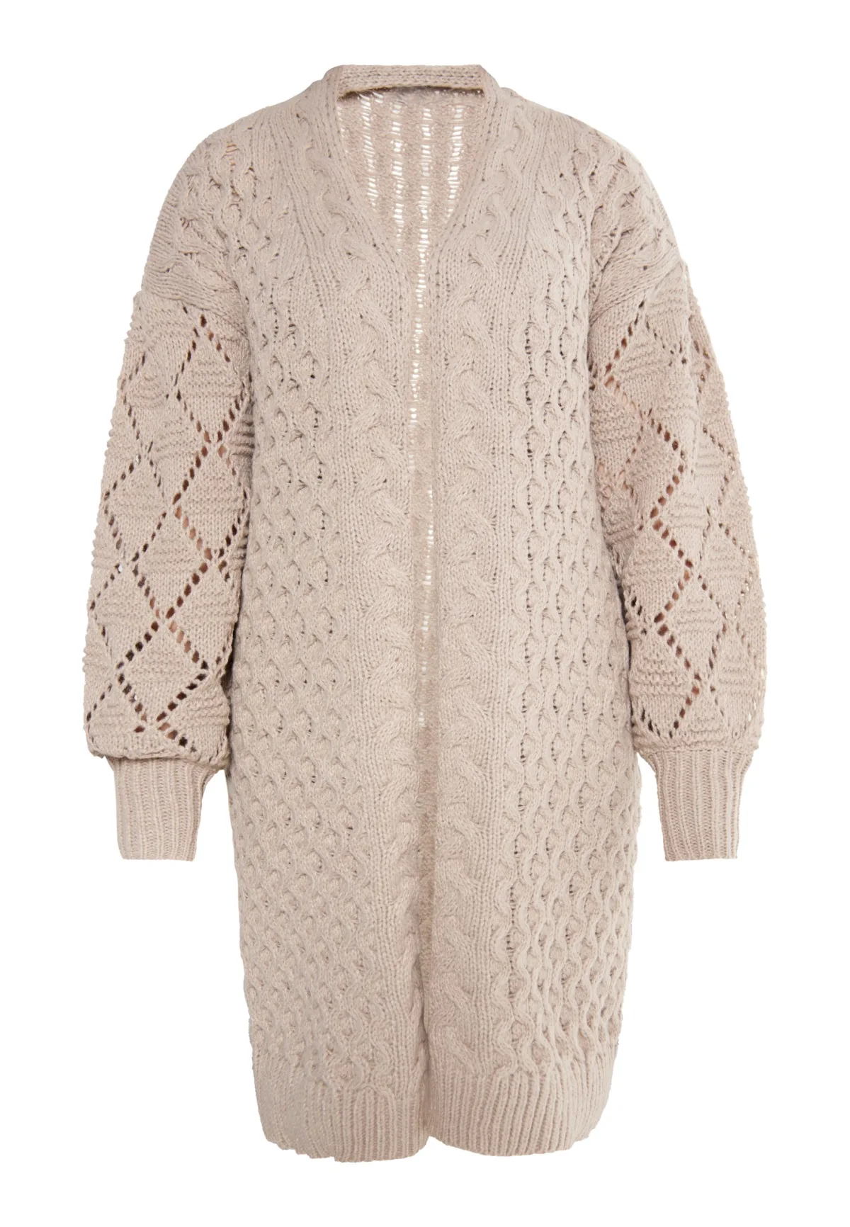 Het lange vest van usha maakt indruk met zijn verschillende breipatronen. Van het uitgebreide kabelbreisel tot het ruitpatroon met gatenbreisel: de jas laat alle facetten van de breikunst zien. Het grove maar zeer zachte garen speelt een rol en zorgt voor gezellige momenten. Gebreid vest