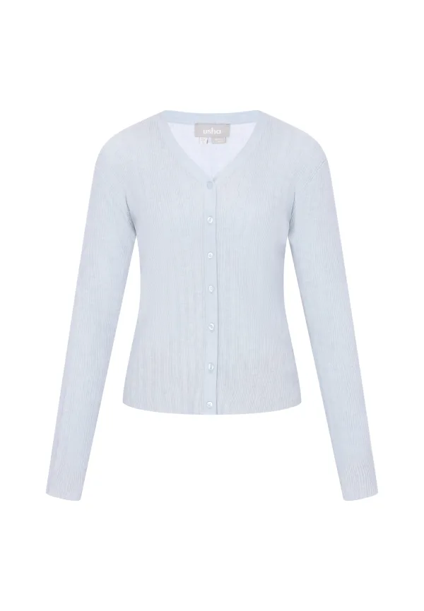 - De laagste prijs van Usha Gebreid vest lichtblauw werd gevonden op 24 april 2026 09:29.