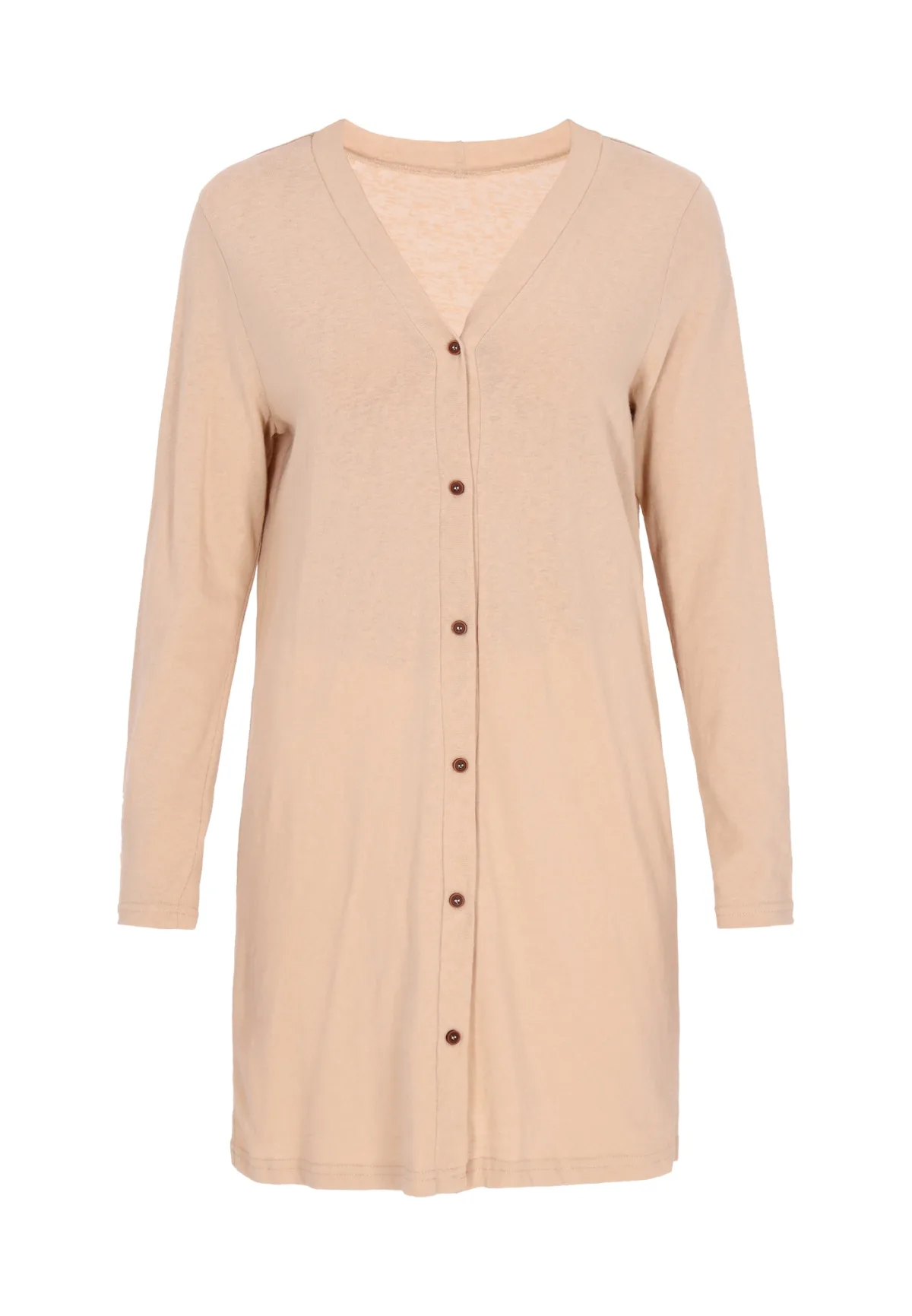 Design: Gevoerde zoom/rand; Type sluiting: Knoopsluiting; Materiaal: Knitwear; Halstype: V-hals; Motief: Effen; Extra’s: Voelt zacht aan; Pasvorm: Normale pasvorm; Armlengte: Lange mouw; Lengte: Lange pasvorm