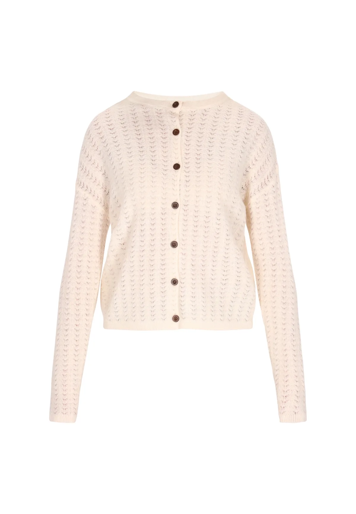 Design: Geribd ceintuurtje; Type sluiting: Knoopsluiting; Materiaal: Knitwear; Halstype: Ronde hals; Motief: Effen; Details: Mesh; Extra's: Met textuur; Pasvorm: Losse pasvorm; Armlengte: Lange mouw; Lengte: Normale lengte