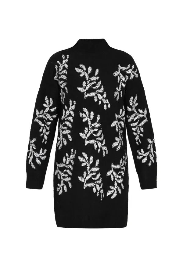 Design: Geribbelde kraag; Materiaal: Knitwear; Halstype: Opstaande kraag; Motief: Bloemenprint; Details: Pailletten; Extra's: Met textuur; Lengte: Kort/mini; Snit: Recht; Pasvorm: Losse pasvorm; Armlengte: Lange mouw