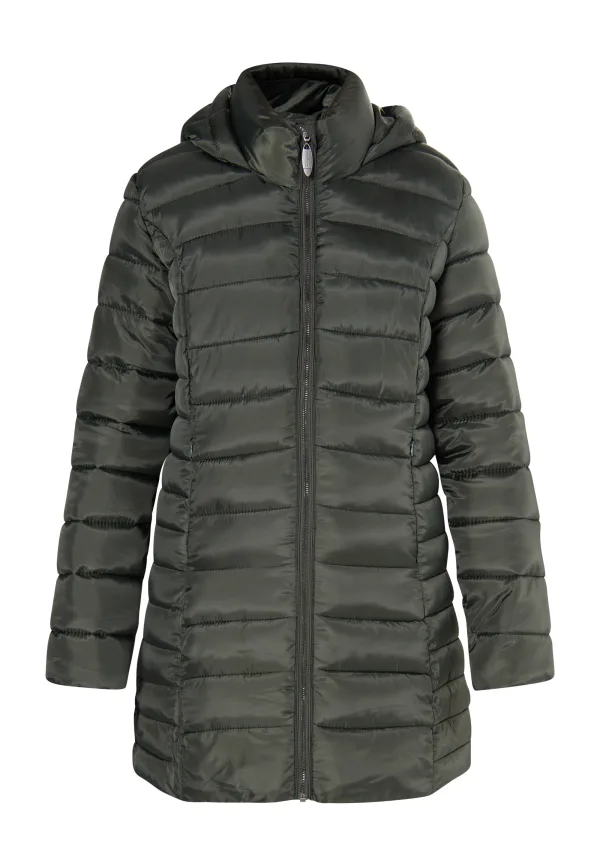 Deze lichtgewicht winterjas van usha BLUE LABEL is gemaakt van glanzend buitenmateriaal en heeft een diervriendelijk, synthetisch vulmateriaal, dat zorgt voor een warme isolatie. De licht getailleerde snit wordt harmonieus aangevuld door de capuchon, de verborgen zakken met ritssluiting en de gewatteerde opstaande kraag. Gewatteerd jack
