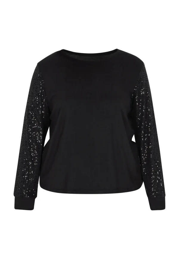 Transformeer je garderobe met deze elegante plus-size blouse met lange mouwen, ontworpen voor een normale pasvorm. De ronde hals zorgt voor comfort terwijl de decoratieve mouwen met pailletten een vleugje glamour aan elke outfit geven. Deze stijlvolle top is perfect voor speciale gelegenheden en is vervaardigd met elegante versieringen die ervoor zorgen dat u op elk evenement opvalt. Dit product maakt deel uit van de Plus Size-collectie. Grote maat blouse