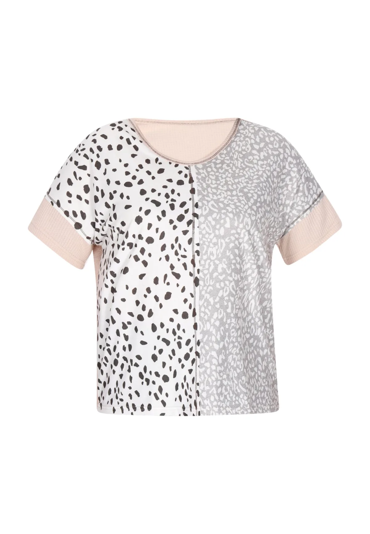 Achterkant buitenmateriaal: 100% polyester Vernieuw je garderobe met deze vrouwelijke plussize blouse met trendy luipaardprint. De korte mouwen en ronde hals maken hem ideaal voor dagelijks gebruik. Deze blouse biedt stijl en comfort en zorgt voor een casual look, terwijl je er de hele dag fantastisch uitziet. Dit product maakt deel uit van de Plus Size-collectie. Grote maat blouse