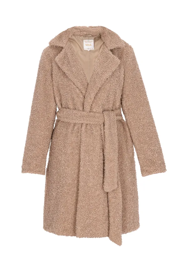 Geniet van het comfortabele comfort van deze knielange teddyjas met een brede reverskraag voor extra warmte en lange mouwen. Hij heeft een riem die goed verstelbaar is. Dit casual, effen bovenkledingstuk biedt een klassieke look die geschikt is voor winterse styling. Jas