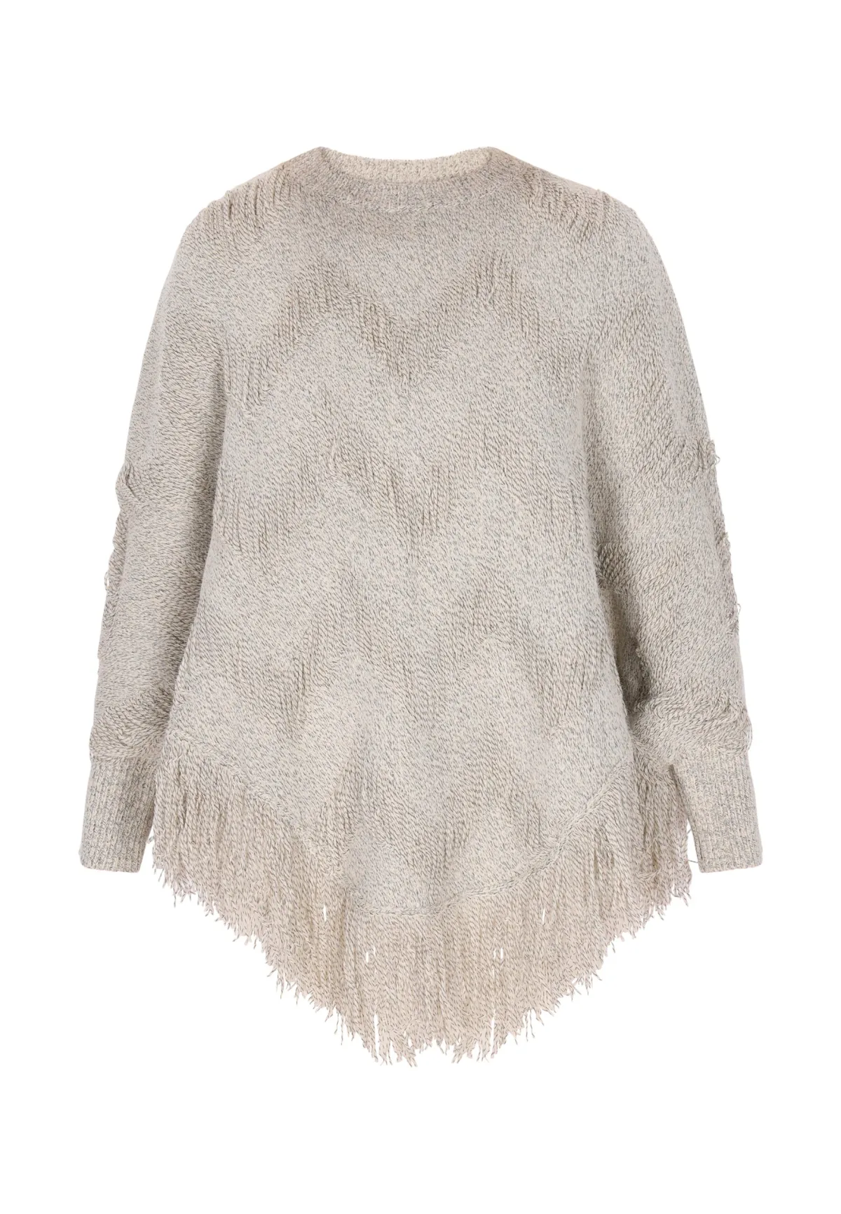 Type sluiting: Slip; Halstype: Ronde hals; Motief: Mélange; Details: Franjes; Pasvorm: Wijde pasvorm; Armlengte: Lange mouw; Lengte: Lange pasvorm