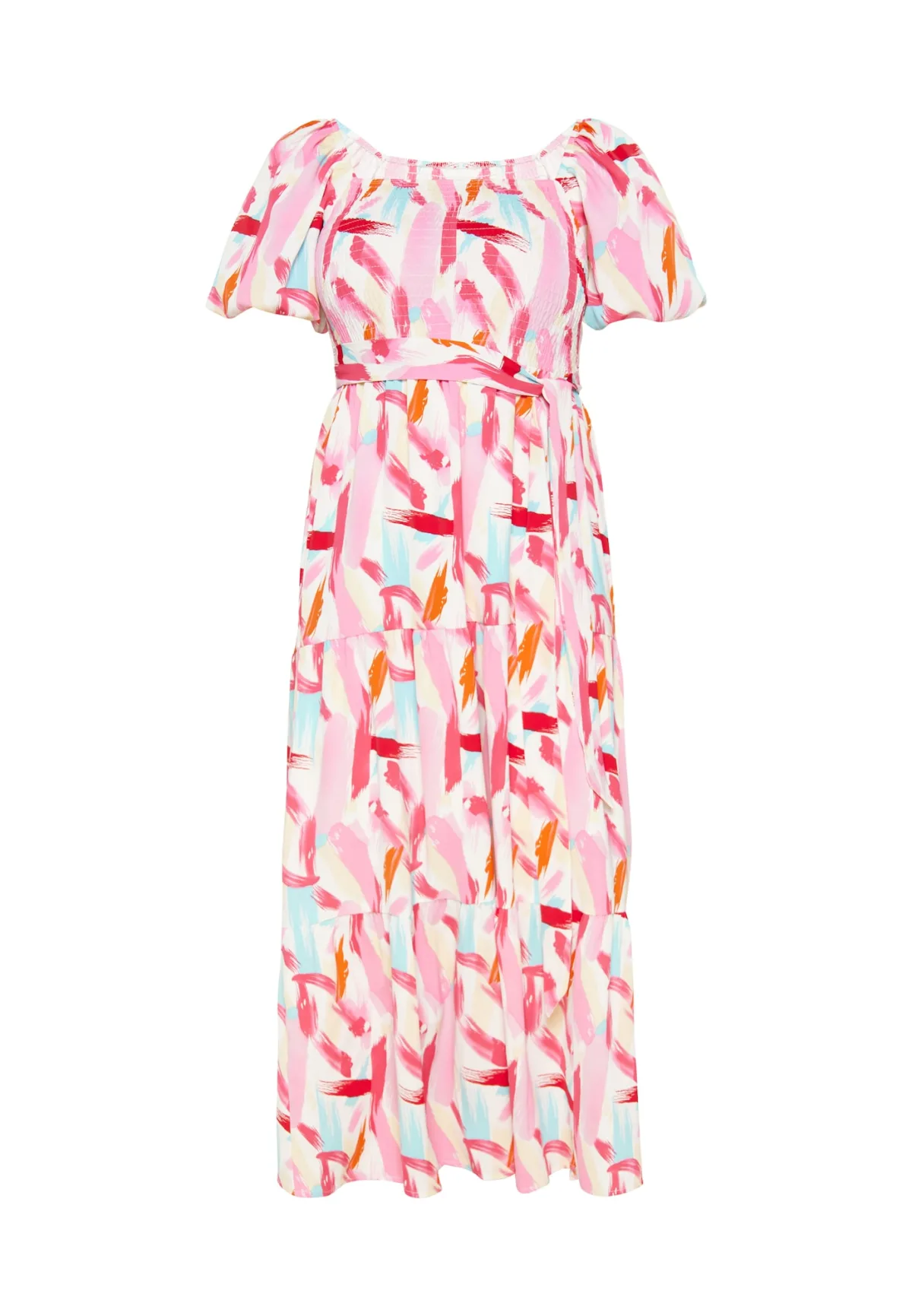 Design: Figuurnaden, Pofmouwen; Type sluiting: Slip; Halstype: Ronde hals; Details: Volant; Extra's: All-over patroon; Lengte: Lang/maxi; Pasvorm: Normale pasvorm; Armlengte: Kwartmouw