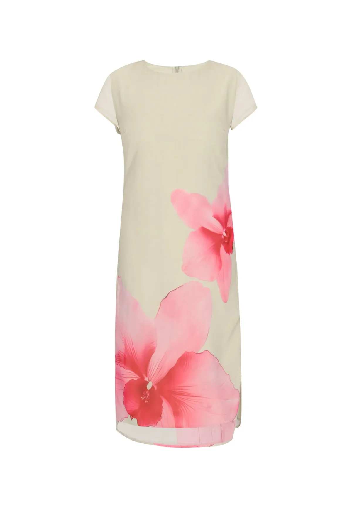 Design: Gevoerde zoom/rand; Type sluiting: Ritssluiting; Halstype: Ronde hals; Motief: Bloemenprint; Extra's: Transparant, Lichte stof; Lengte: 3/4 lengte; Snit: Recht; Pasvorm: Normale pasvorm; Armlengte: Kwartmouw