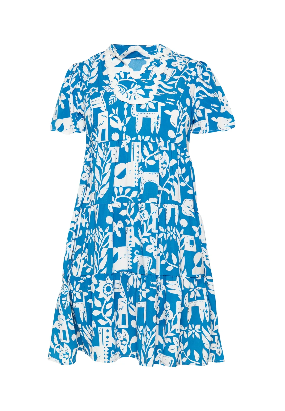 Design: Pofmouwen; Halstype: Uitgesneden hals; Details: Volant; Extra's: All-over patroon; Lengte: Kort/mini; Pasvorm: Normale pasvorm; Armlengte: Kwartmouw