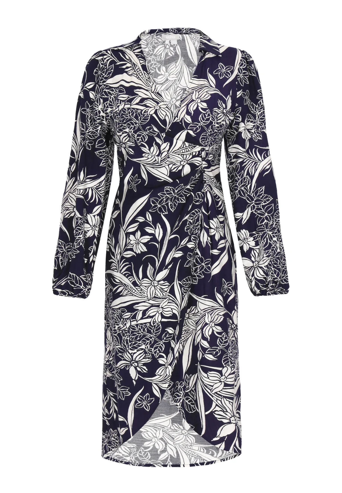 Design: Diepe snit/decolleté, Turn-down kraag; Materiaal: Viscose; Halstype: V-hals; Motief: Bloemenprint; Details: Gedrapeerd, Wikkel design; Extra's: All-over patroon, Koele grip; Lengte: 3/4 lengte; Snit: Recht; Pasvorm: Normale pasvorm; Armlengte: Lange mouw