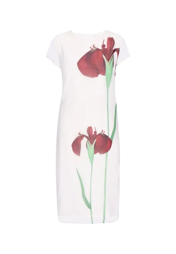 Design: Gevoerde zoom/rand, Rug rits; Type sluiting: Ritssluiting; Materiaal: Chiffon; Halstype: Ronde hals; Motief: Bloemenprint; Extra's: Voelt zacht aan; Lengte: 3/4 lengte; Snit: Recht; Pasvorm: Normale pasvorm; Armlengte: Kwartmouw