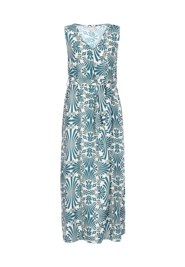 Design: Rechte zoom, Diepe snit/decolleté; Materiaal: Viscose; Halstype: V-hals; Details: Plooien; Extra's: All-over patroon, Voelt zacht aan; Lengte: 7/8 lengte; Snit: Getailleerd; Pasvorm: Normale pasvorm; Armlengte: Mouwloos